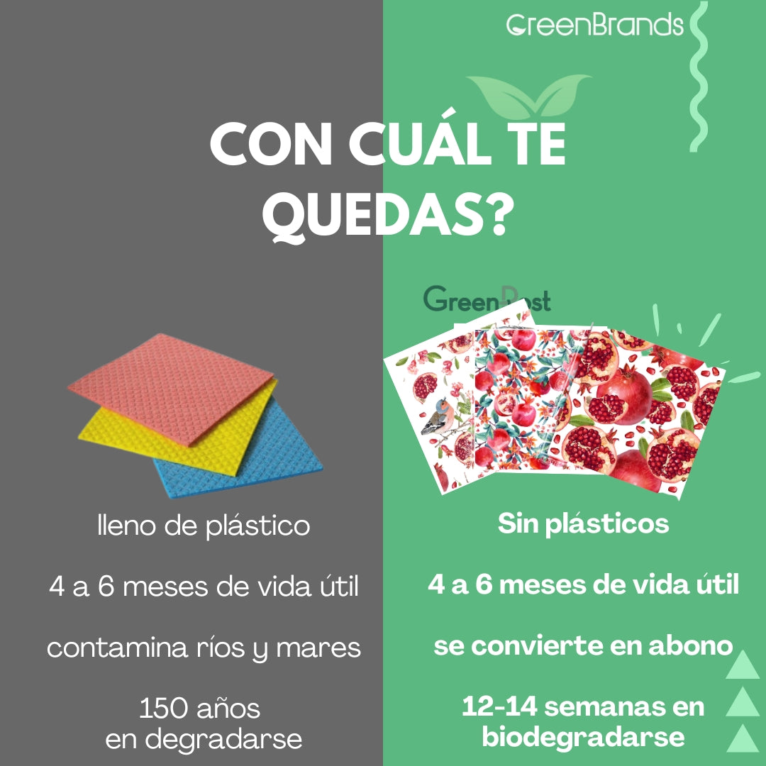 Caja de 10 Packs - 30 Paños Esponja Compostable - Diseño Granadas