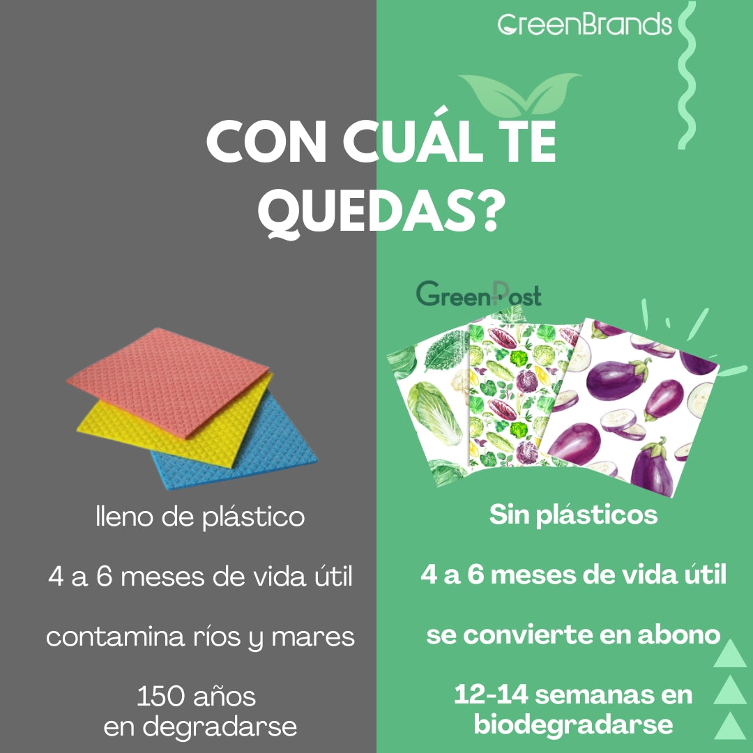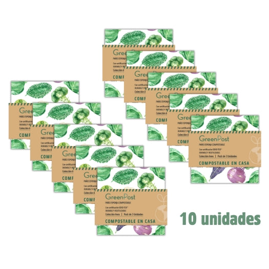 Caja de 10 Packs - 30 Paños Esponja Compostable - Diseño Verduras