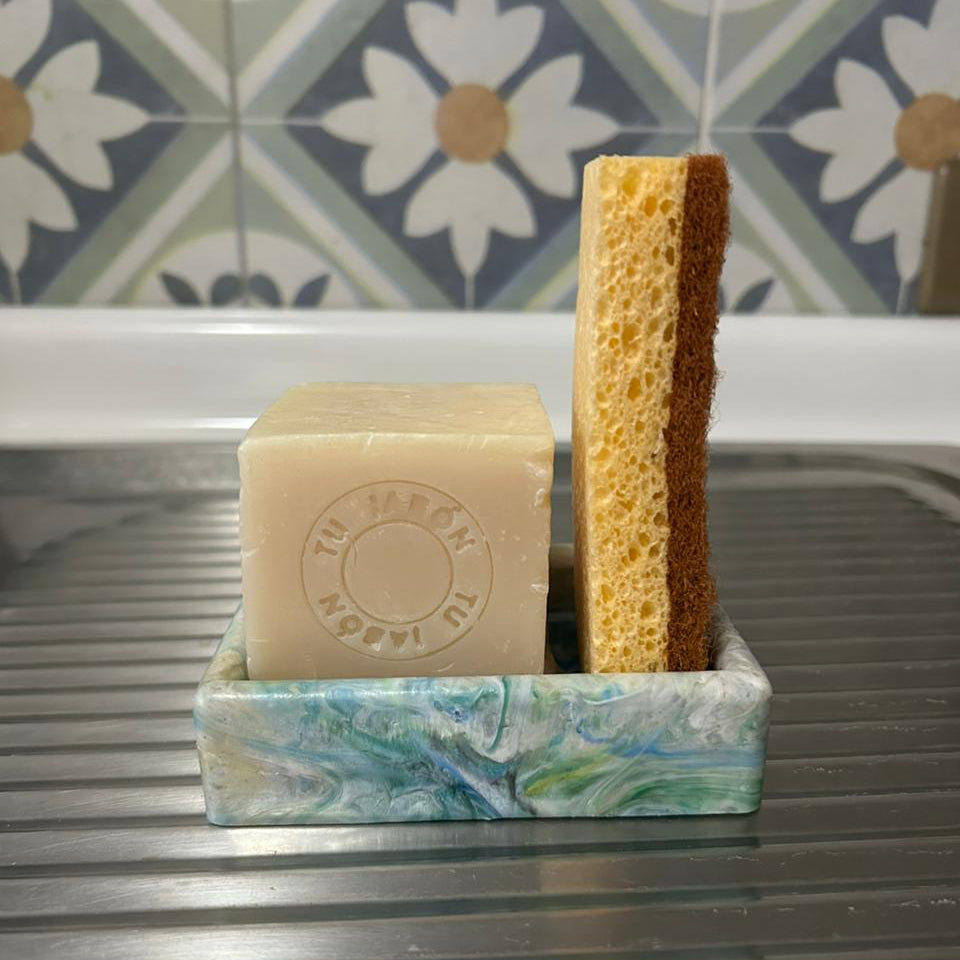 Contenido: 1 Porta Lavalozas (plástico reciclado), 1 Lavalozas en Barra Tu Jabón (220gr) y 1 Pack de Esponjas de Fibra de Coco.
