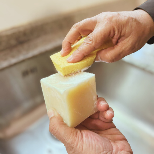 Forma Espuma: Frota la esponja húmeda directamente sobre la barra hasta obtener una espuma rica y abundante.